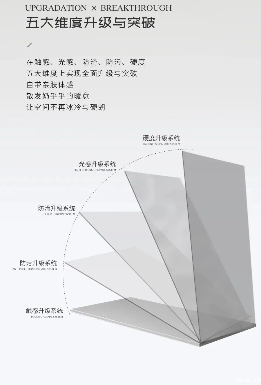 壹加壹岩板·干粒半抛+模具系列新品突破了行业对产品品质的认知,以“深入洞察消费者本质价值需求”作为研发理念,通过90分钟高温慢烧技术,层层工艺打磨,32道跃式抛光,展现出珍珠般温润璀璨的珠光和凹凸有致的颗粒质感,从光感、触感、质感和性能进行精细创新,是实至名归的“高颜值实力派”!